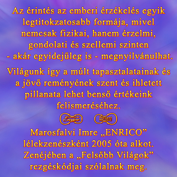 Touch is one of the most mysterious forms of human perception, as it can manifest on physical, emotional, mental, and spiritual levels – even simultaneously. Our world can thus become a sacred and inspired moment of the past's experiences and the future's hope, leading us to the recognition of our inner values.